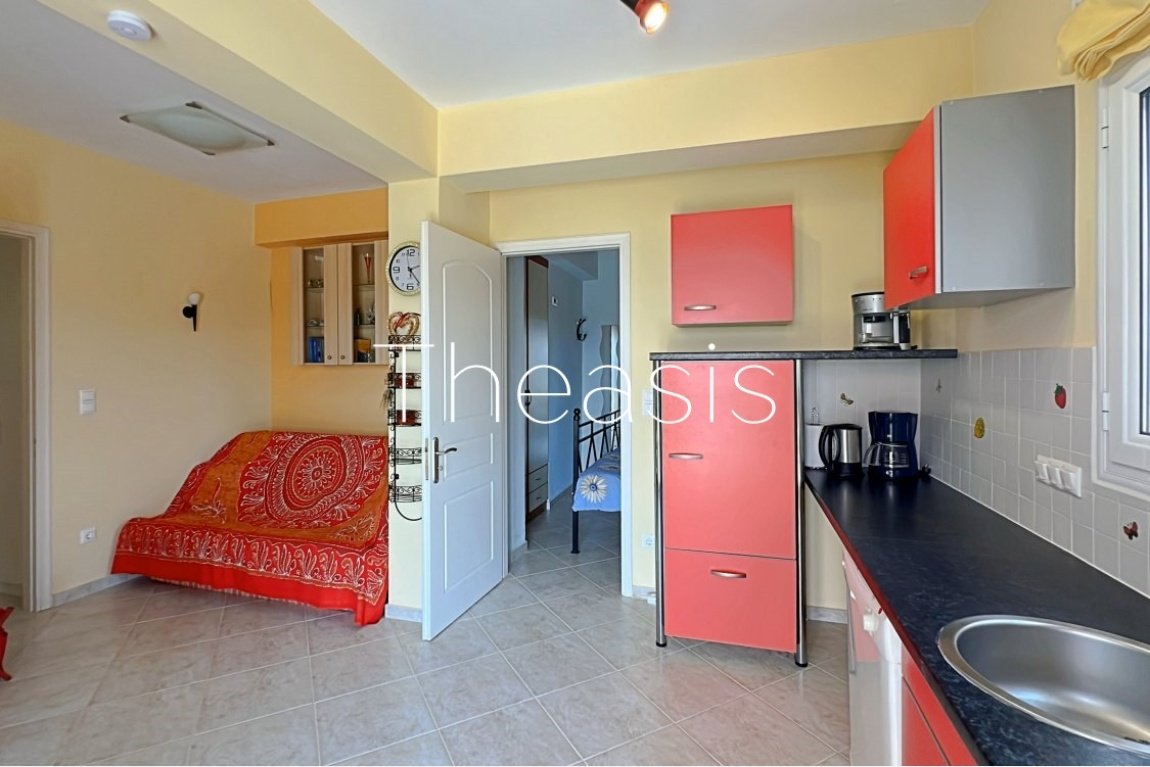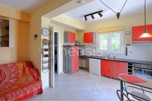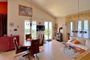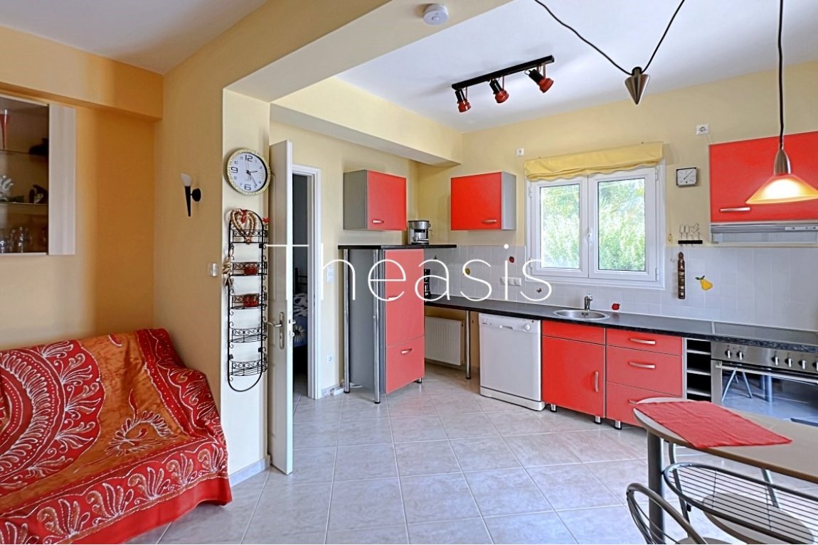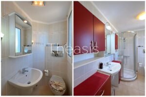 The house has been built in two levels measuring 111,86 m² of living area and 24,4 m² of garage – storage. Each level accommodates an independent apartment. The apartments are furnished and equipped with devices such as refrigerator, dishwasher, microwave oven etc.