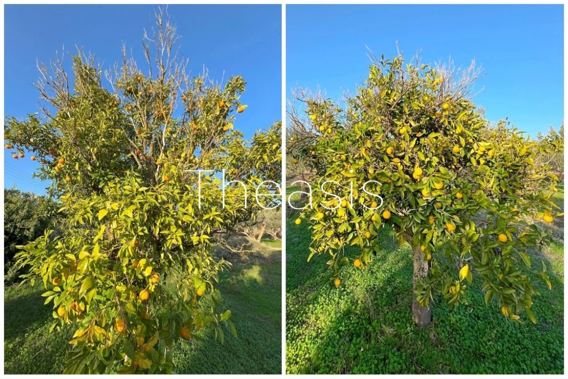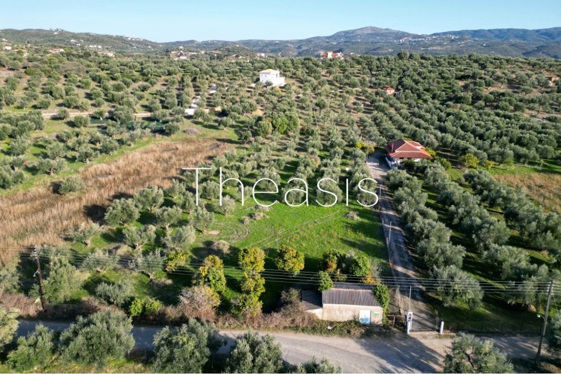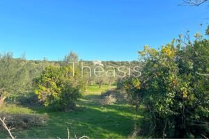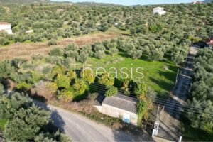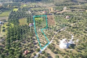 The property is planted with productive olive trees and a variety of fruit trees, including orange and lemon trees, adding both character and seasonal harvests to the land. An existing 42.22 m² basic storage structure is also included, and the plot is connected to public electricity, with public water supply conveniently nearby.