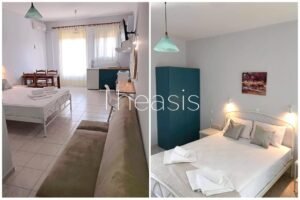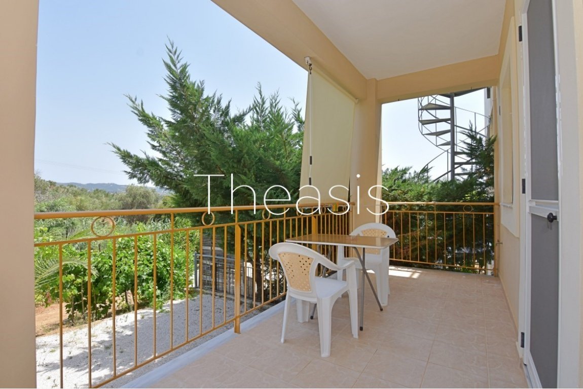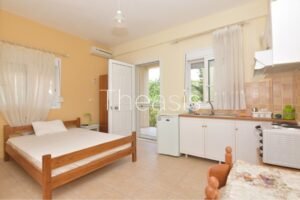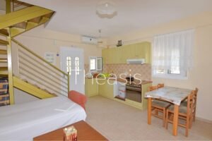 The Maisonette is 50 m² and consists of an open plan living room with fireplace and a fully equipped kitchen with dining area. An internal staircase leads to the upper floor that consists of 1 bedroom and 1 bathroom with shower. The veranda enjoys magnificent sea views. At the ground floor There is 1 open plan Studio of 25 m².