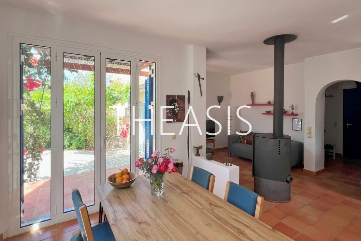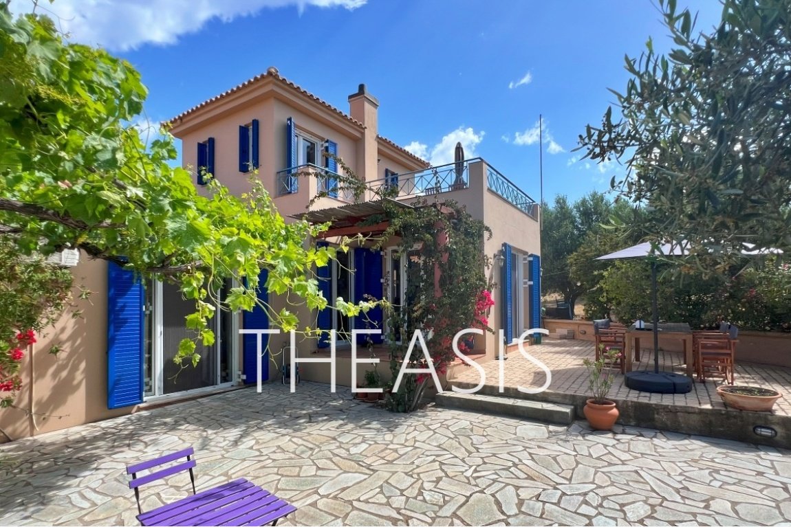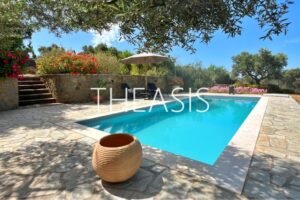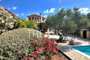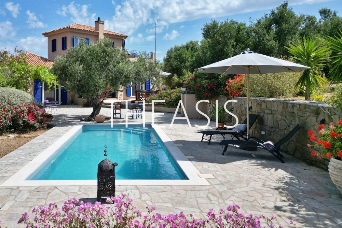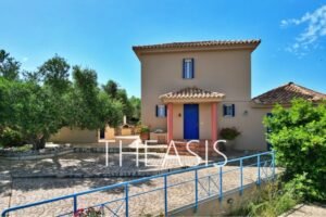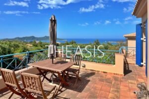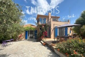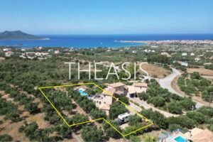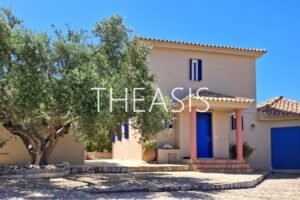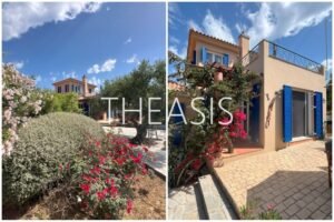 Villa Gabriella is situated in Tapia – Methoni, one of the most sought-after locations in the southwestern part of the Messinian peninsula. Set within a fully fenced complex of three homes, the villa spans 122 m² over two levels on a generous 1627 m² plot, with access through a secure entrance gate.