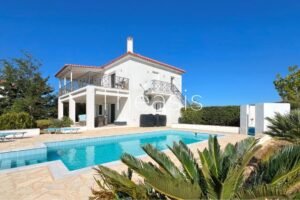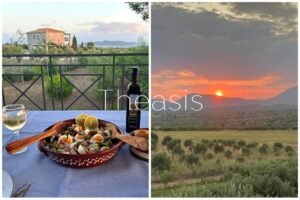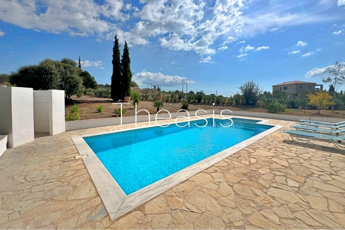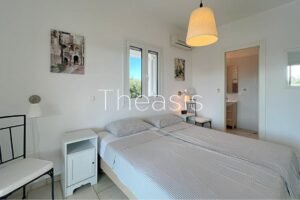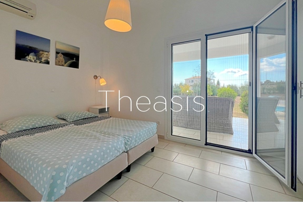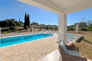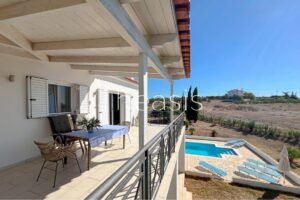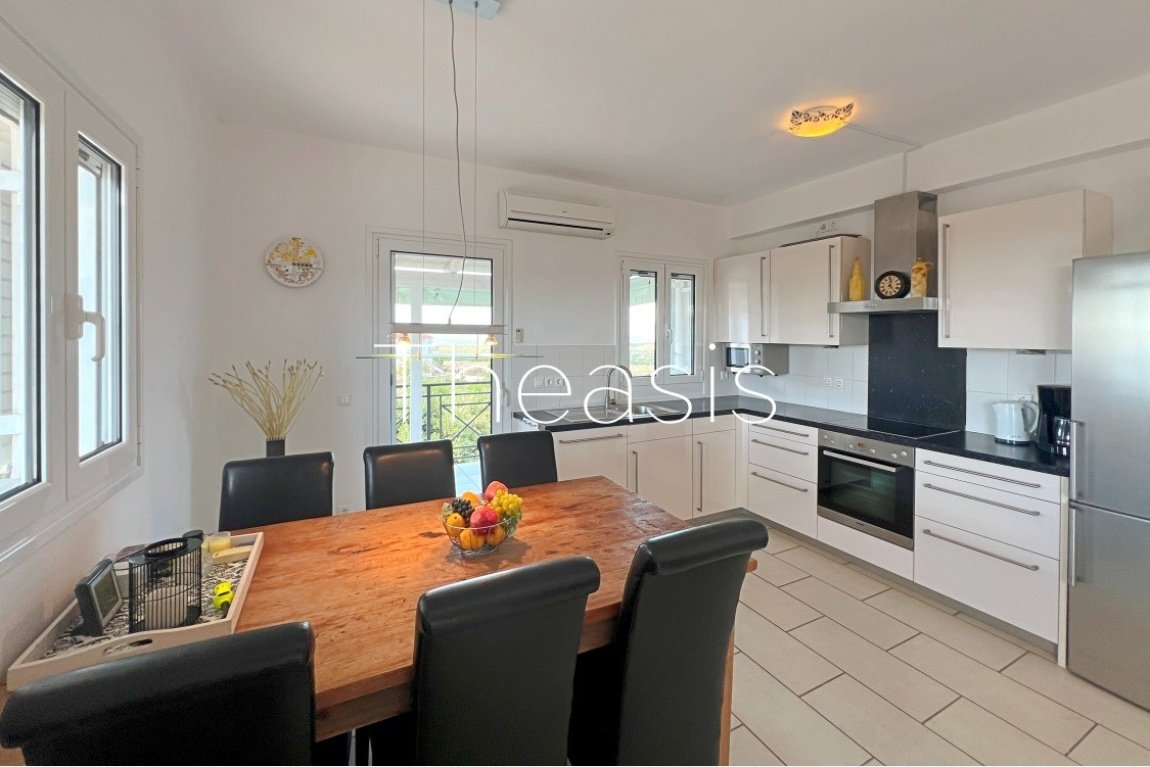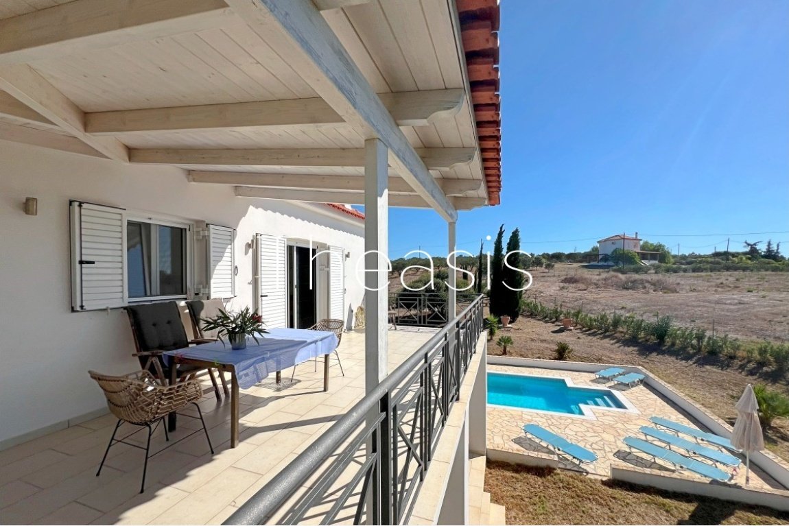 Das Anwesen befindet sich in Evangelismos – Kamaria, einer beliebten Gegend für Ferienhaus- und Villenbesitzer, die natürliche Schönheit mit lokalem Charme verbindet und eine ruhige Umgebung mit vielfältigen Möglichkeiten für Aktivitäten im Freien bietet. Das 5.549 m² große Grundstück bietet einen herrlichen Blick auf das Meer, die Olivenhaine der Umgebung und die Inseln Schiza, Agia Marina und Sapienza. Das bezugsfertige Haus wurde in den Jahren 2009–2010 auf zwei Ebenen mit einer Gesamtfläche von 130 m² erbaut.