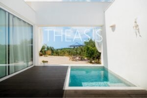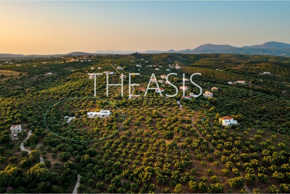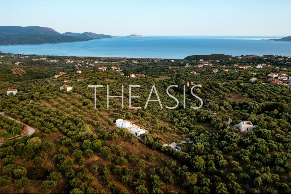 Tucked away among lush olive groves at the end of a quiet private road, this beautifully designed villa offers complete privacy and uninterrupted views of the sea, surrounding islands, and nearby mountains — views that are protected from future development.