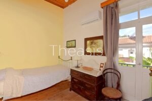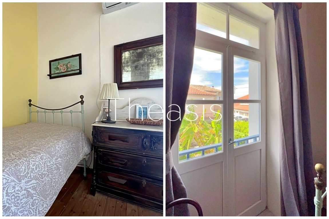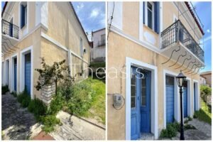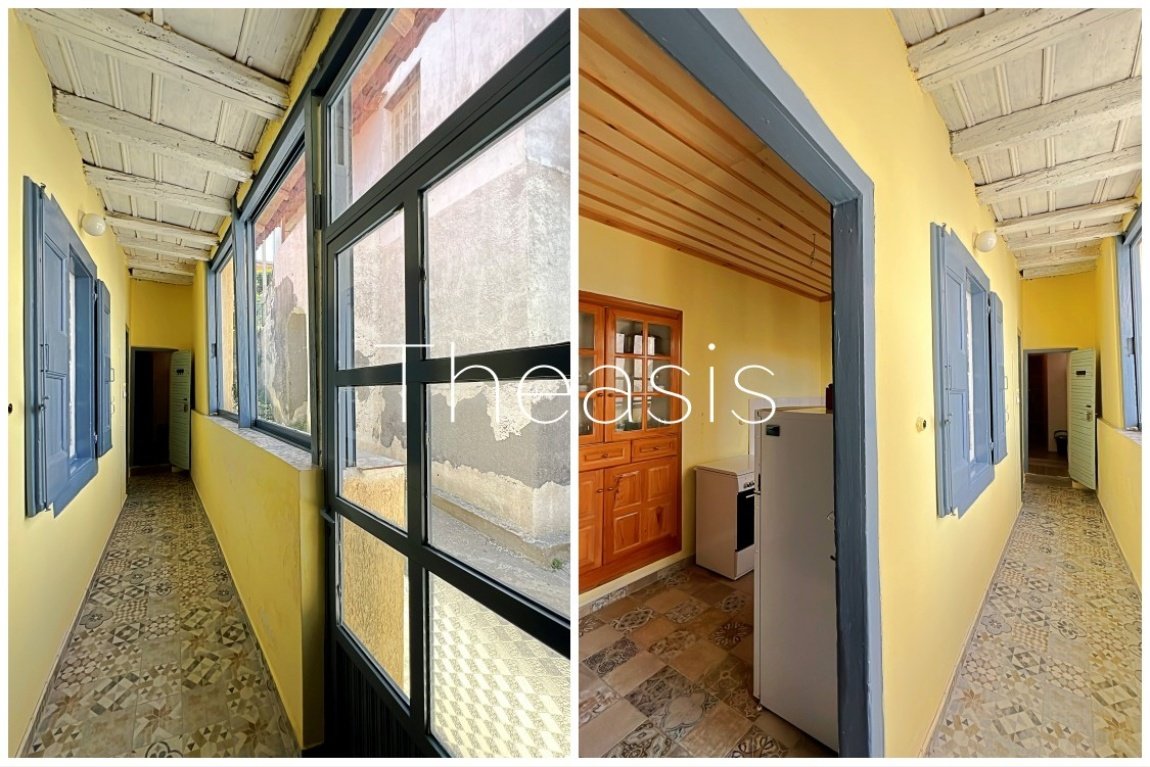 The house is located in the seaside zone of the settlement and it is a typical example of a traditional house where the decorative Venetian elements meet the simple lines of Greek traditional architecture. The magnificent decorated balcony is the most distinctive and beautiful element of the house with its curved iron supports, decorated railings and delicate metal elements rising high above the balcony door. Decoration also exists below the edge of the roof where it joins the outer wall of the house and below the windows. The ground floor doors are very simple, made of timber and tall, with metal handmade decorated skylights at the end.