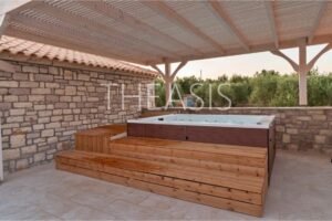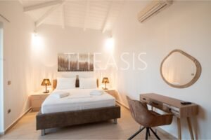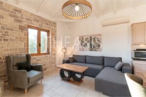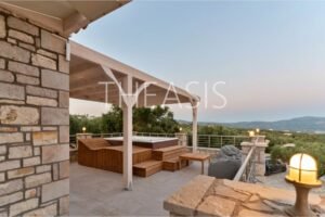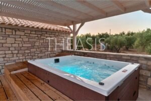 Expansive verandas and sun-drenched terraces embrace each home, creating inviting outdoor spaces ideal for lounging, dining, or entertaining while soaking up uninterrupted views of the sea, the island of Schiza, and the surrounding olive fields. Each residence also boasts its own private jacuzzi terrace, offering a perfect spot to unwind and admire the changing light from sunrise to sunset.