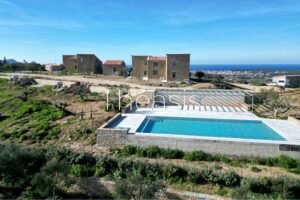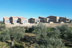 On top of a green hill, surrounded by olive groves, this complex of stone-built, highly aesthetic residences, is under construction. It is the ideal location for those who want to own a house in a calm, quiet, organized and safe environment, away from the noise of the touristic area. The location is simply amazing and perfect for enjoying the view to the sea, the traditional settlement of Methoni and the island of Sapienza. It invites you to relax and indulge in the charm of the sunset, as the sun disappears below the horizon and the Venetian castle of Methoni.