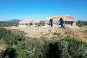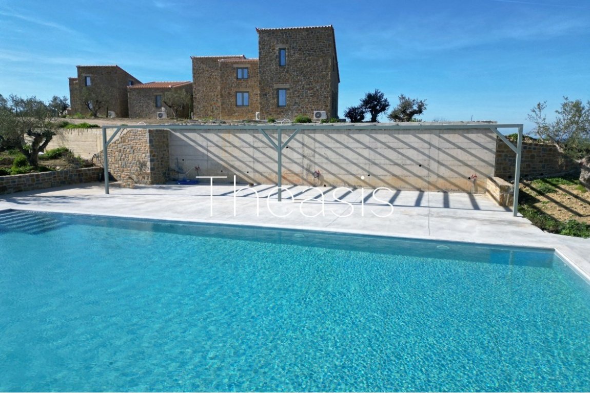 Stone built houses, walls with insulation (60cm depth), double windows, nets, aluminum windows and doors, metallic pergola for the verandas (covered with material of your choice), insulated tile roofs.