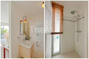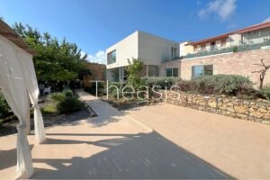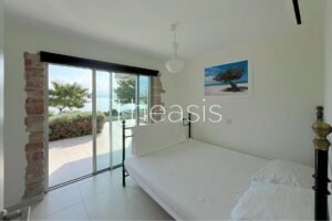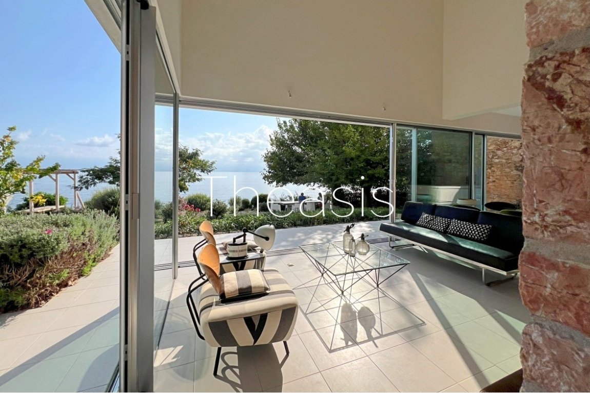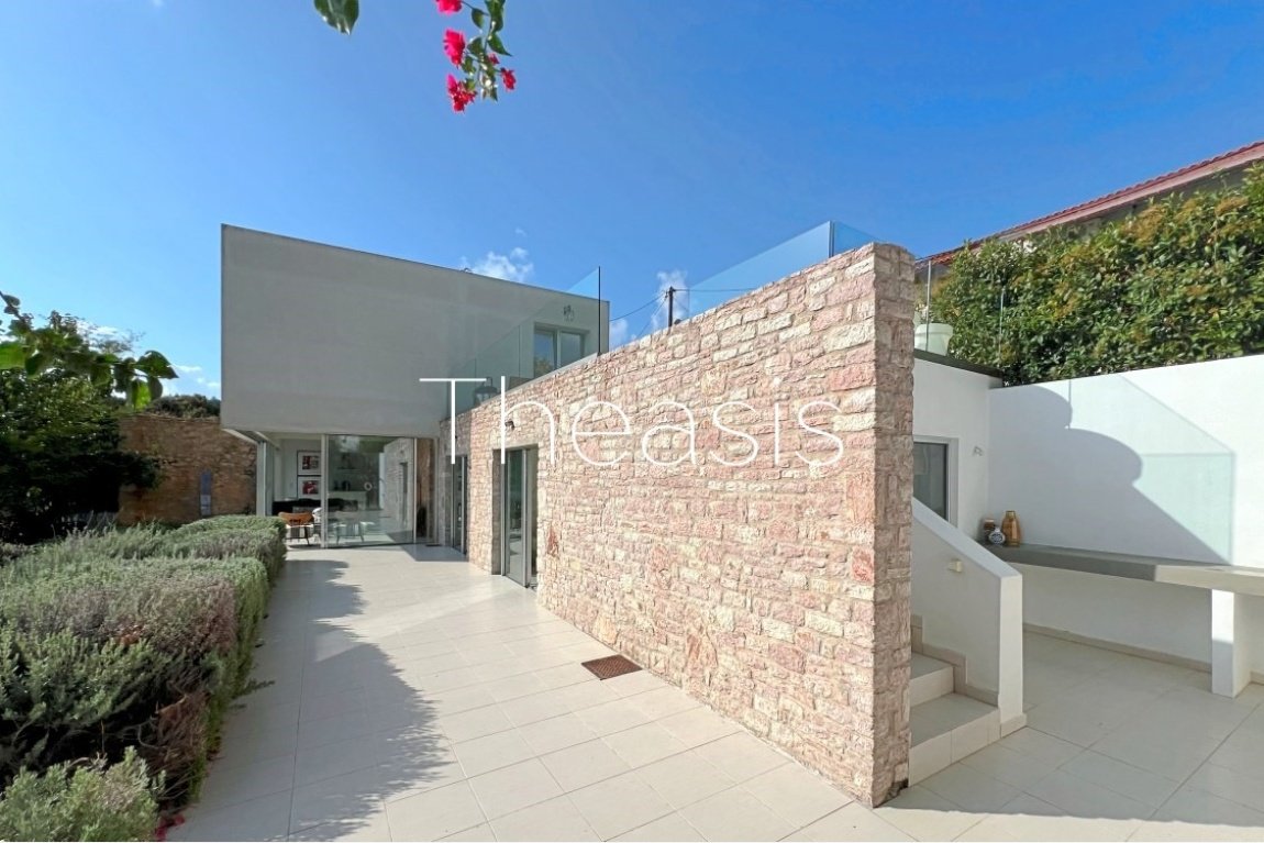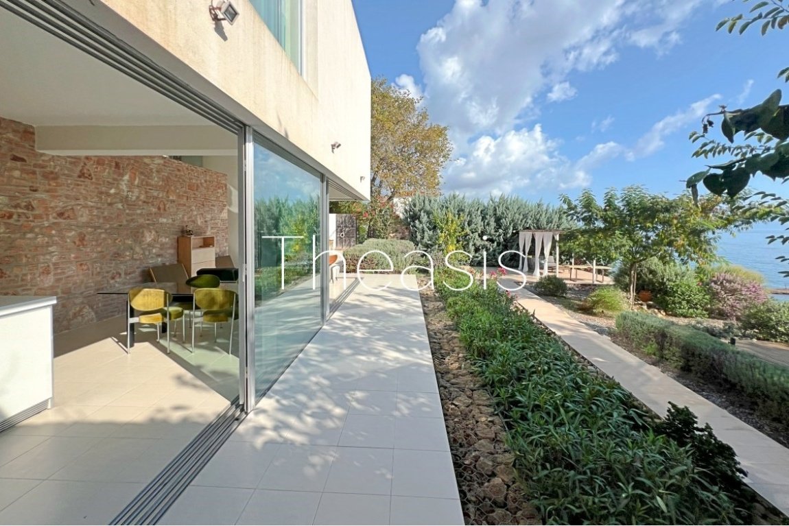 • Property Details: Waterfront Modern Design Villa, Inside the borderline of a non-touristic settlement, Plot 597.76m², House 180m², 3 Bedrooms, 2 Bathrooms, Guest Toilet, Storage Area, Garden, Outdoor Shower, Pergola.
