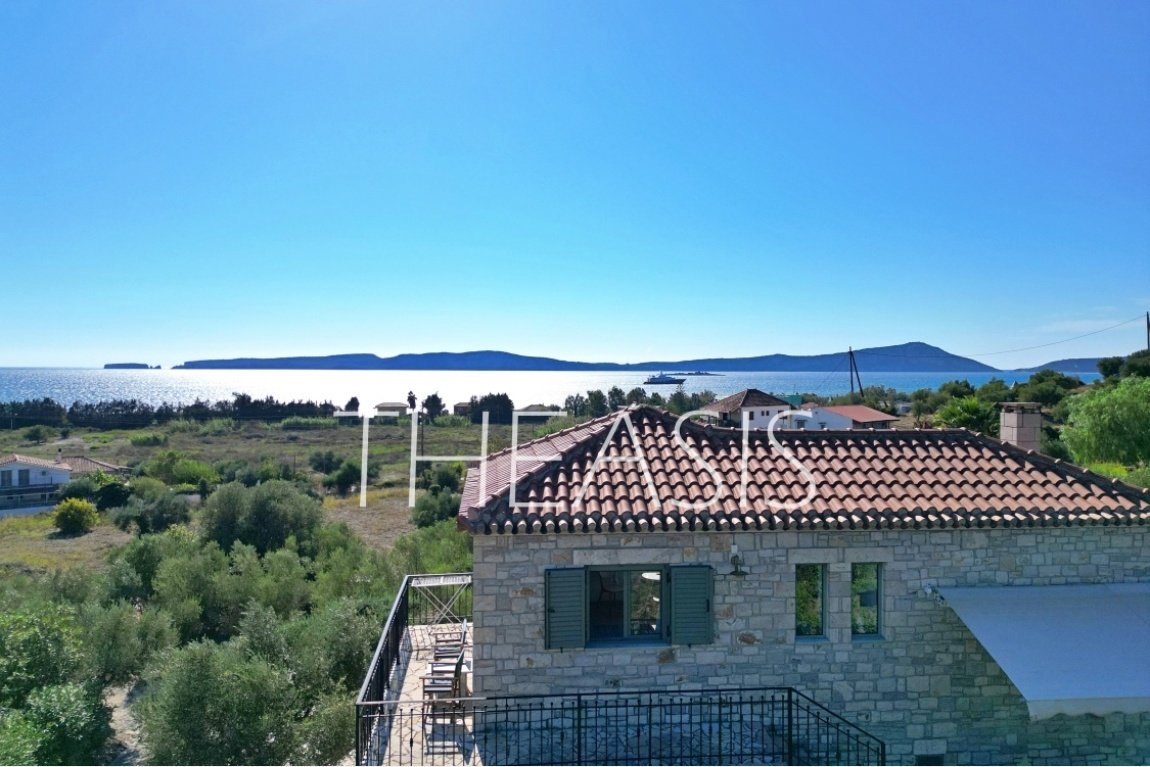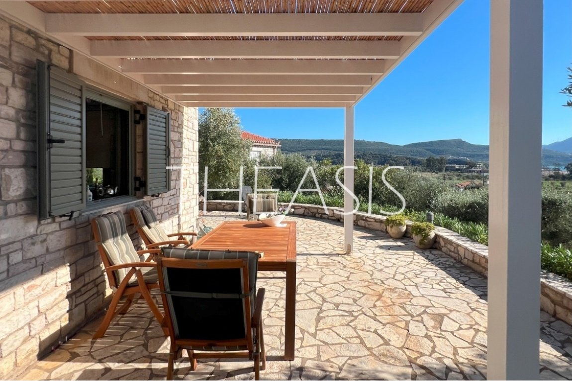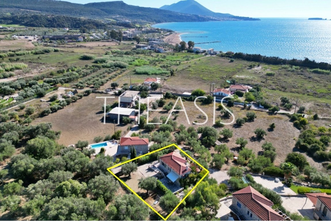 Nestled in the beautiful area of Gialova, only 500 meters from the sandy beach and local shops, this lovely villa is surrounded by olive trees in a peaceful neighborhood of four similar houses. It perfectly combines traditional architectural charm with modern comfort. This highly desirable location is ideal for holiday homeowners and villa lovers, offering open views of the sea, Navarino Bay, the island of Sfacteria, and the stunning colors of the sunset.