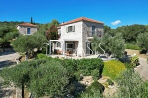 The property is partially fenced and attractively landscaped with productive olive trees and a mix of Mediterranean plants and herbs.