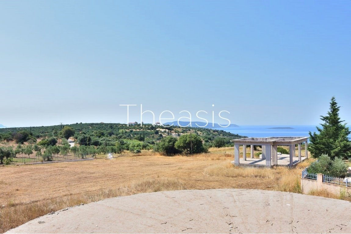 The plot is 590 m² while the house measures 95 mof living area. The ground floor is 54 m² consisting of a spacious open plan living room with kitchen and W.C. The upper floor is 41 m², consisting of 2 bedrooms sharing a bathroom. The balconies enjoy stunning views to the sea, the islands Schiza, Agia Marina, and the olive groves.