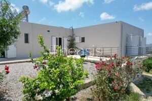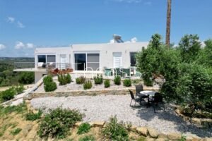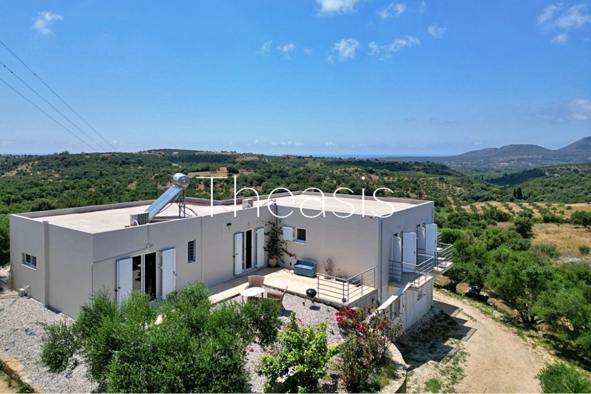 Between the villages Finiki and Evangelismos, the construction of this bathed in light villa started in 2021. Built on 2 levels, the villa consists of 2 independent apartments on the upper floor, an under-construction apartment on the lower floor and a separate storeroom.