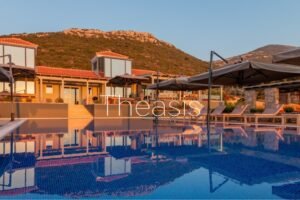 Gialova village, 8 minutes’ drive away, has high quality beach-side restaurants, some housed in old stone warehouses, coffee shops, bars, stores, supermarkets and three filling stations/garages.