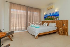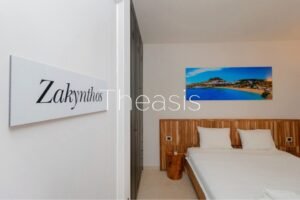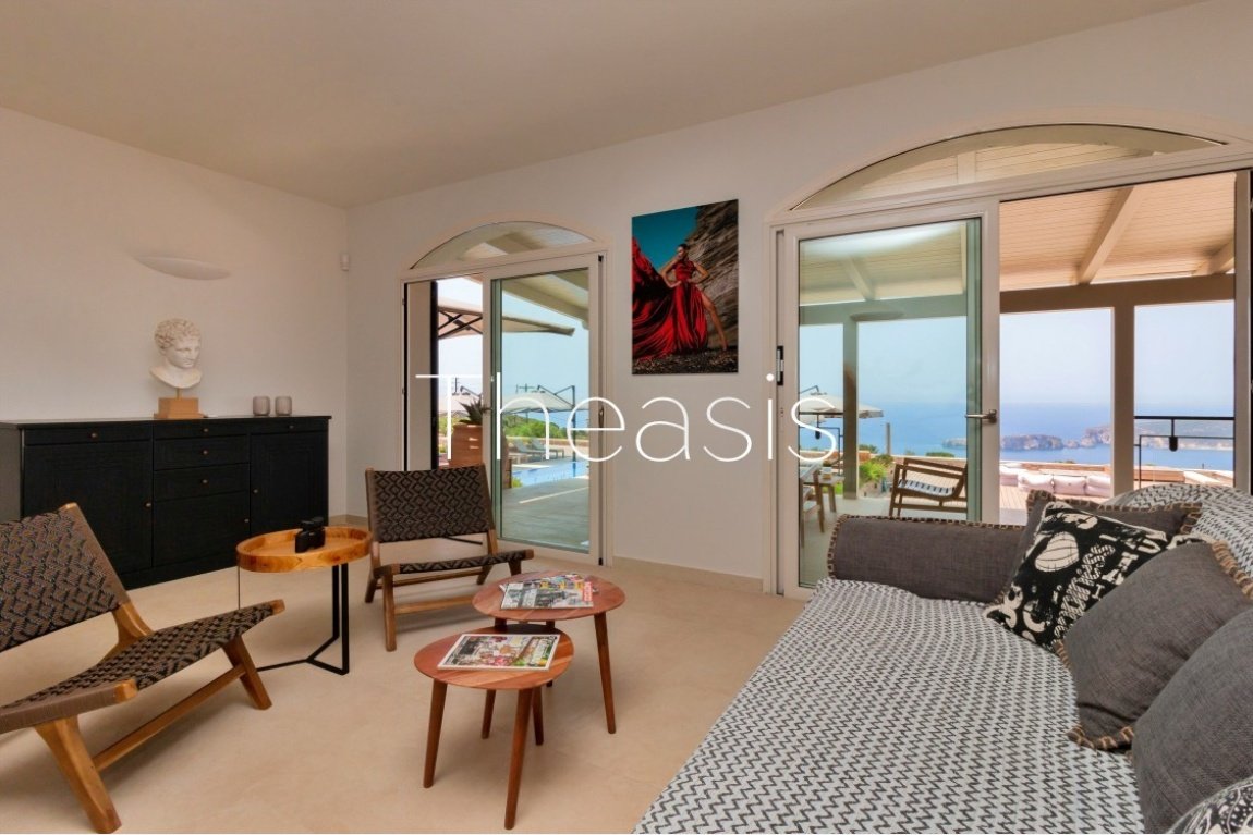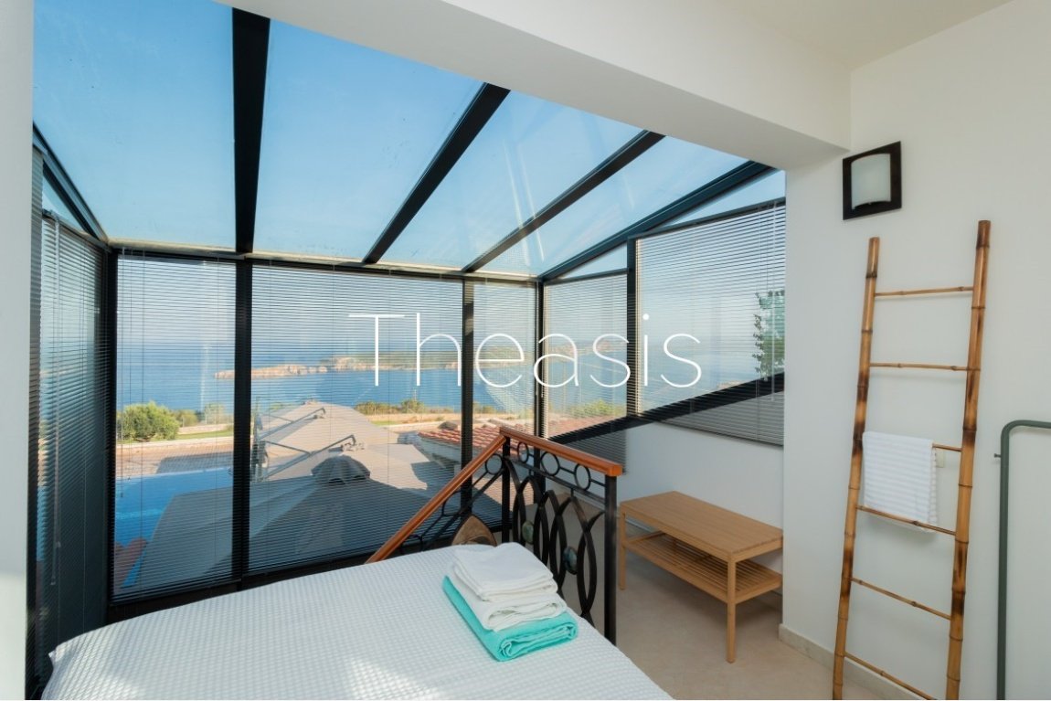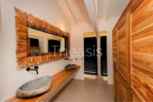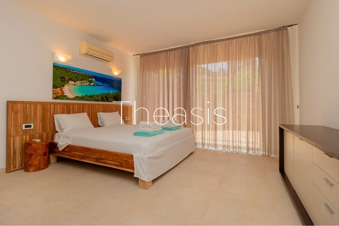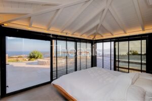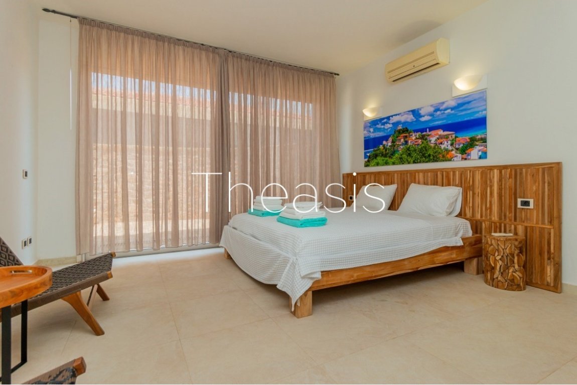 The Master Suite is located next to the villa and enjoys full privacy. The Master Suite consists of a bedroom, bathroom and closet room, it is surrounded by glass windows and it enjoys magnificent views to the Ionian Sea and the sunset.