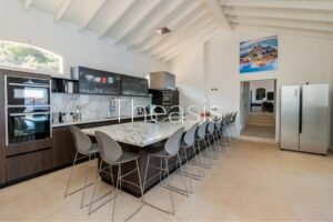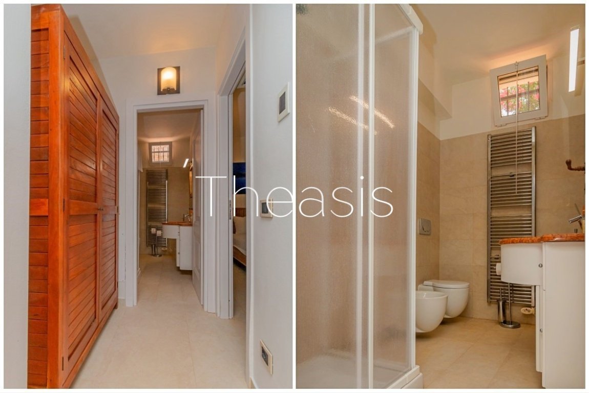 Two internal staircases lead to the lower level which consists of 2 bedrooms, 2 bathrooms, a private gym, a staff room, a laundry room, a wc and a storage. On the lower level there are also 2 independent apartments which consist of 2 bedrooms sharing one bathroom and can be used as guest houses.