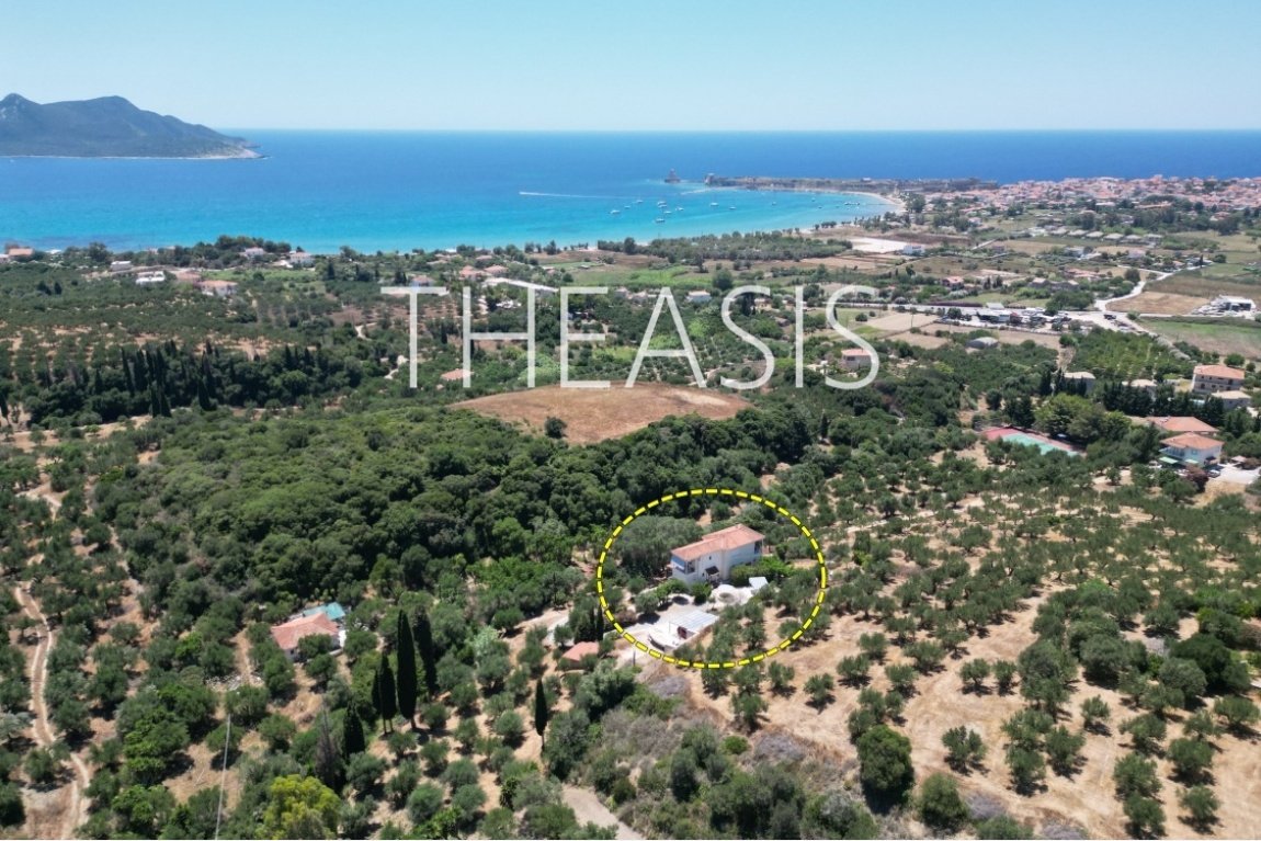 Located on the quiet hillside of Tapia in Methoni, only 1.2 km away from the beach, this villa combines natural beauty with traditional style. From its raised position, you get clear views of the area. Green hills with olive trees and local plants surround the property. Below, you can see the coastal town of Methoni and its well-known Venetian castle. In the distance, the Ionian Sea stretches out, with the island of Sapienza visible on the horizon and colorful sunsets in the evening.